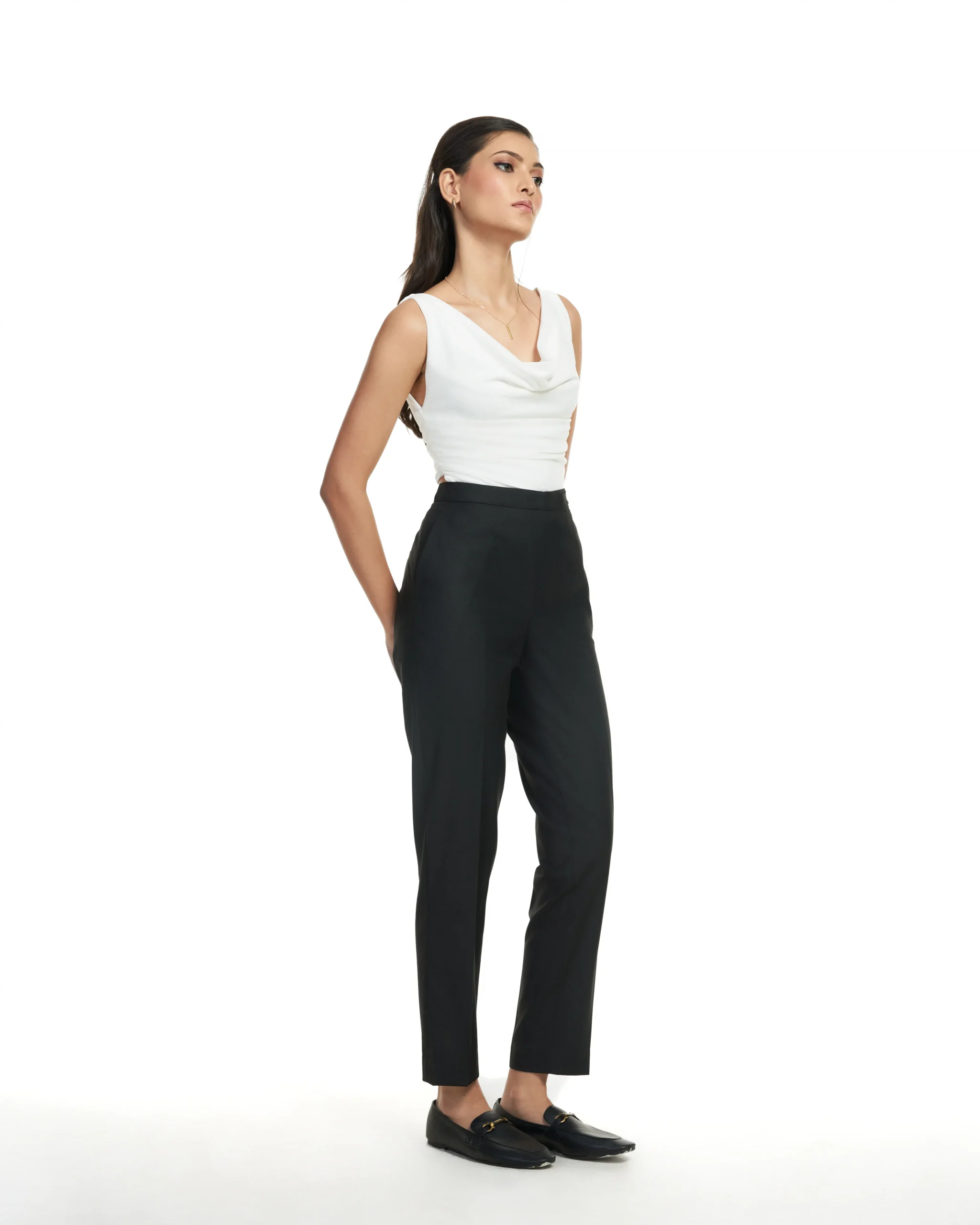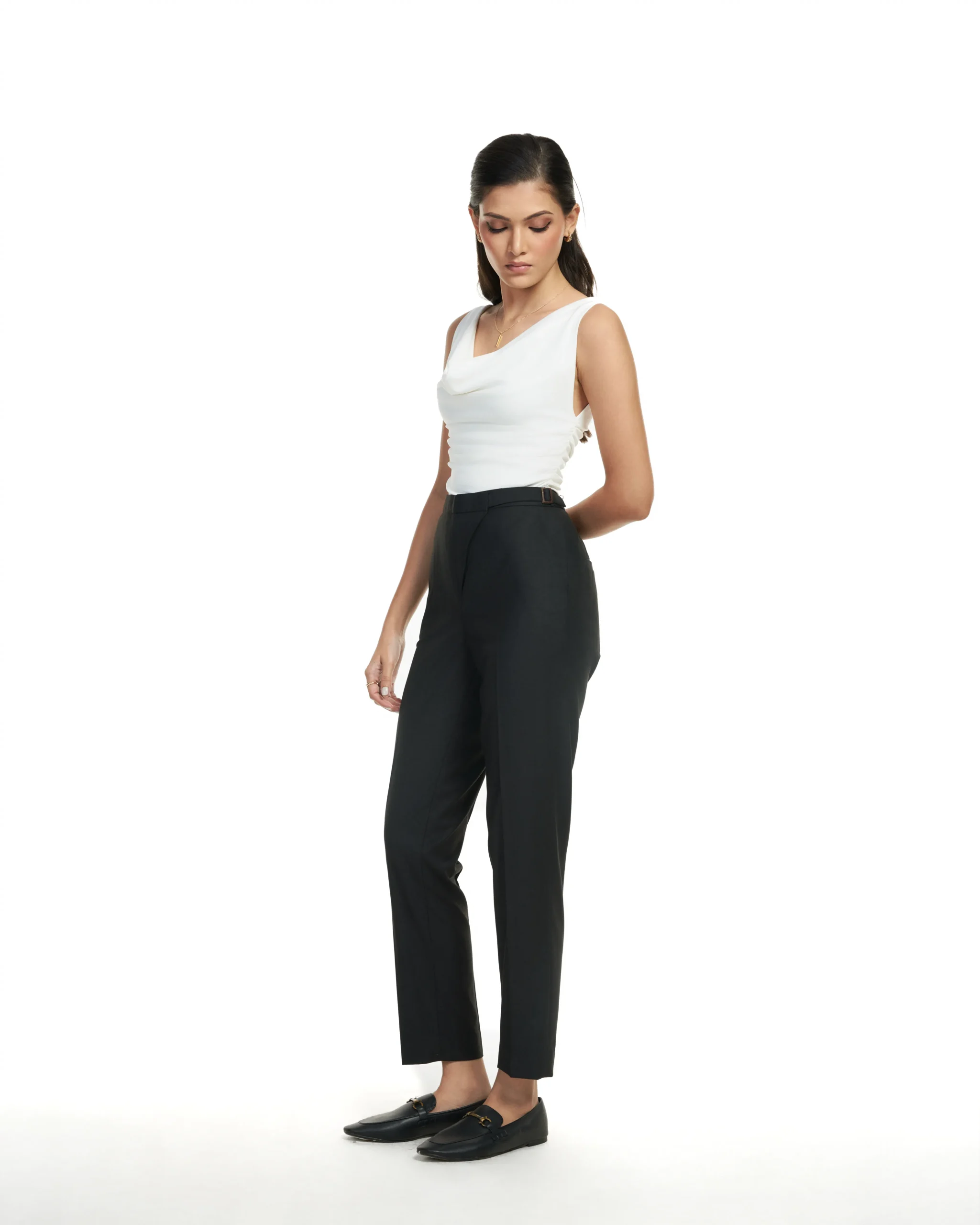 Buckle Up is a High-Waisted Asymmetrical Trousers offering a refined take on classic tailoring, blending architectural precision with everyday wearable comfort. Designed to sit high on the waist, they create a long, streamlined silhouette that works perfectly for both professional settings and evening events.