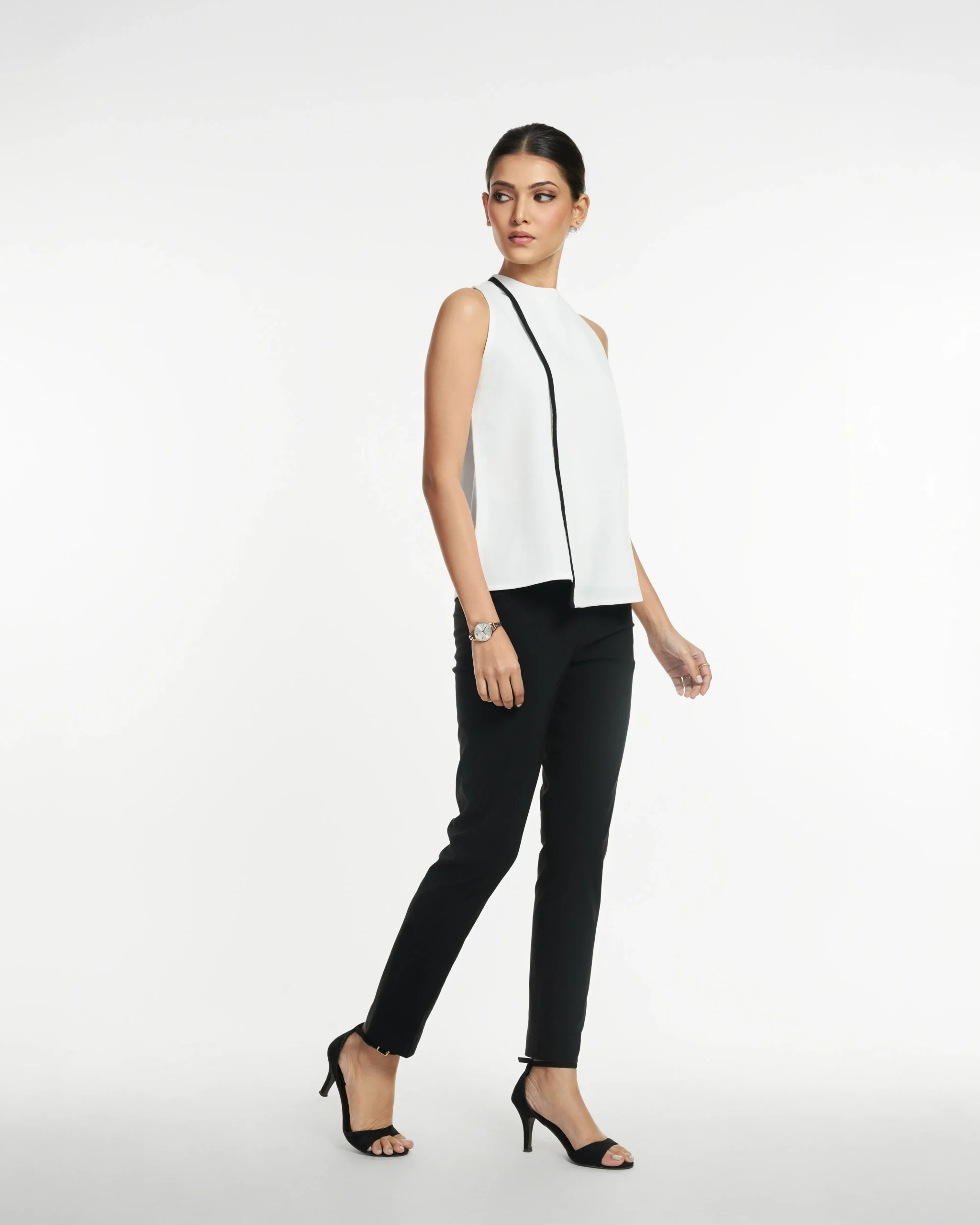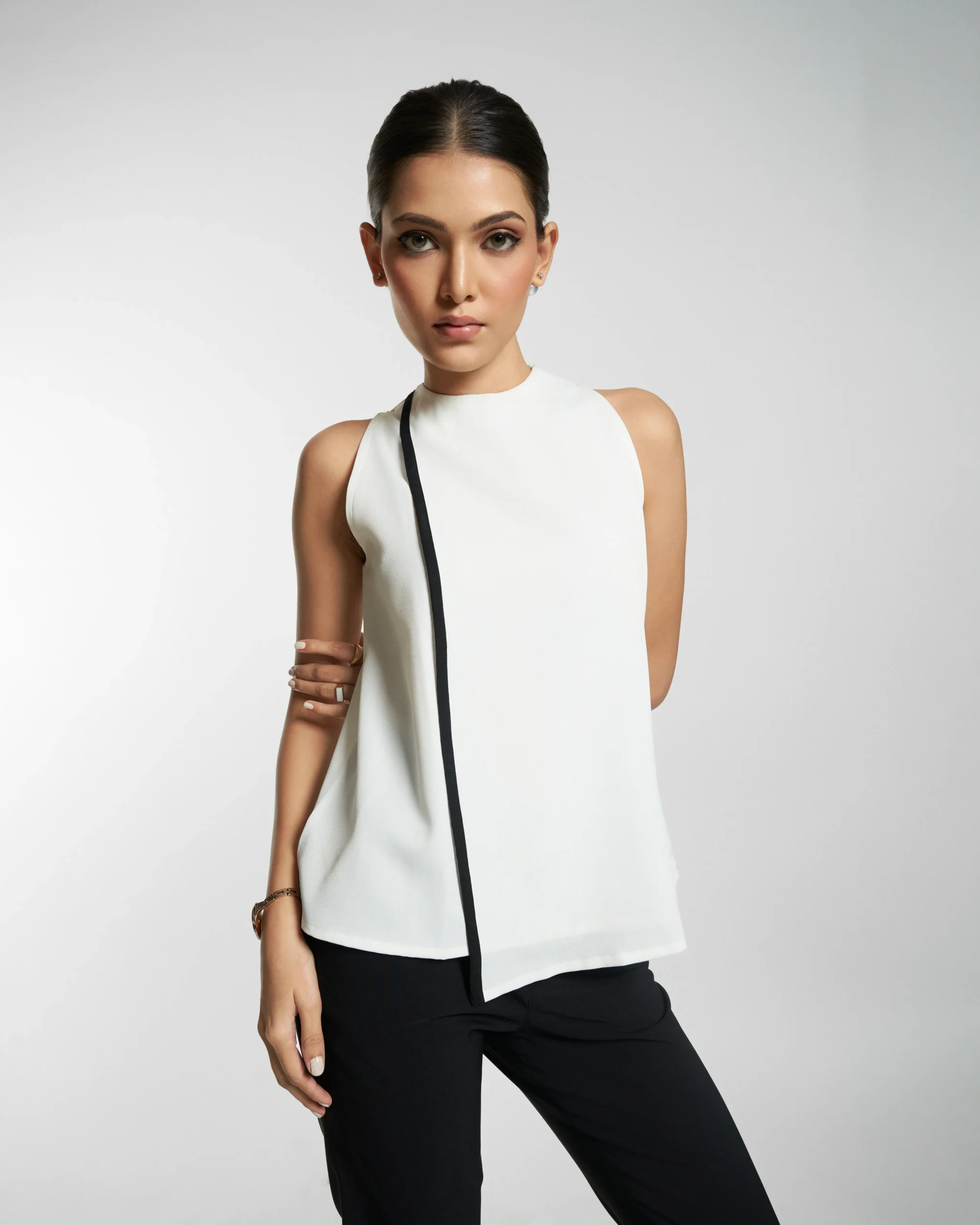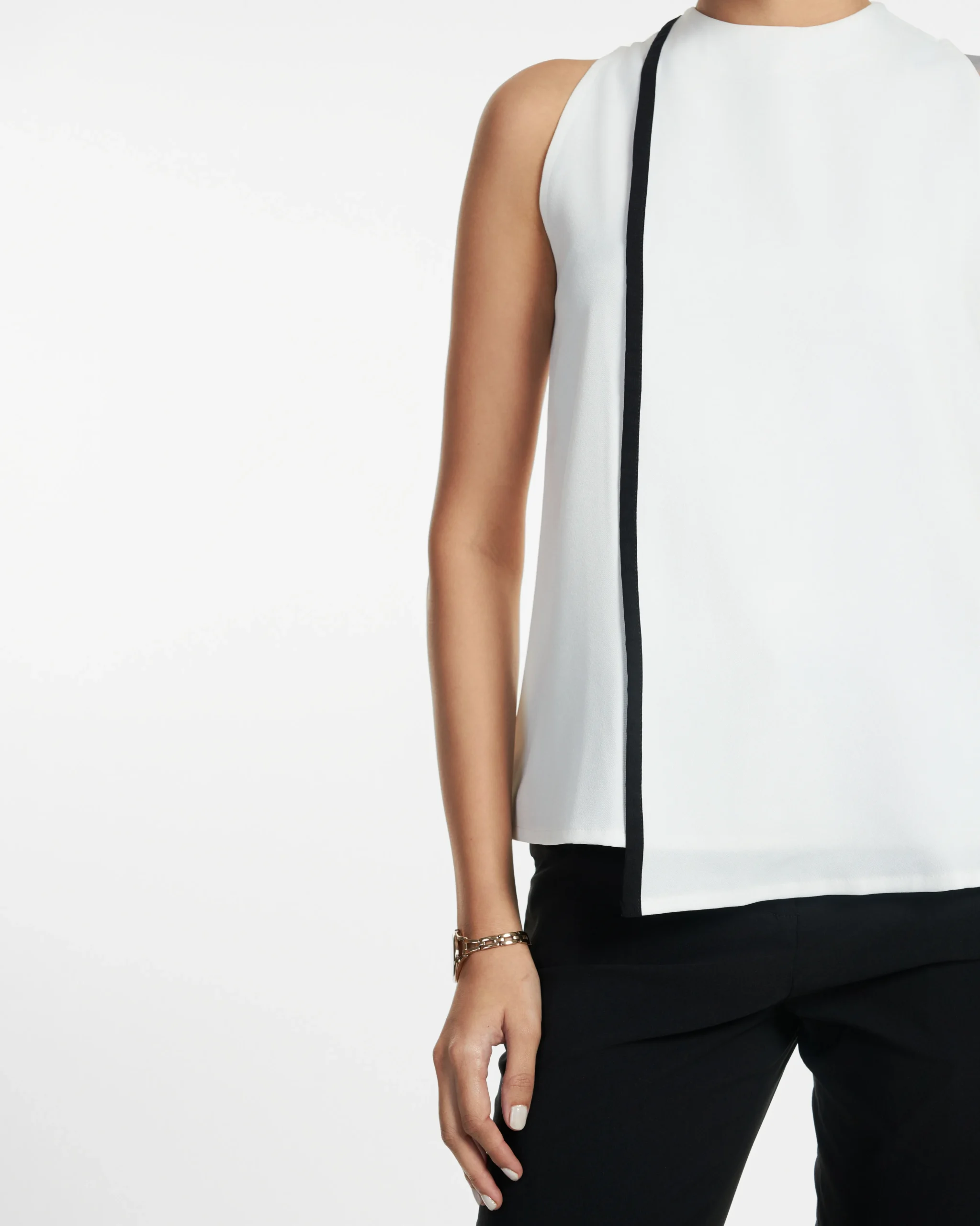 Experience the ultimate fusion of comfort and sophistication with The White Tie Affair, crafted for the modern woman who embodies confidence and poise. Flowy bottom hem creates a fluid, effortless silhouette. Defined neckline provides a polished, refined touch and contrasting black lining finish adds a sleek, contemporary edge.